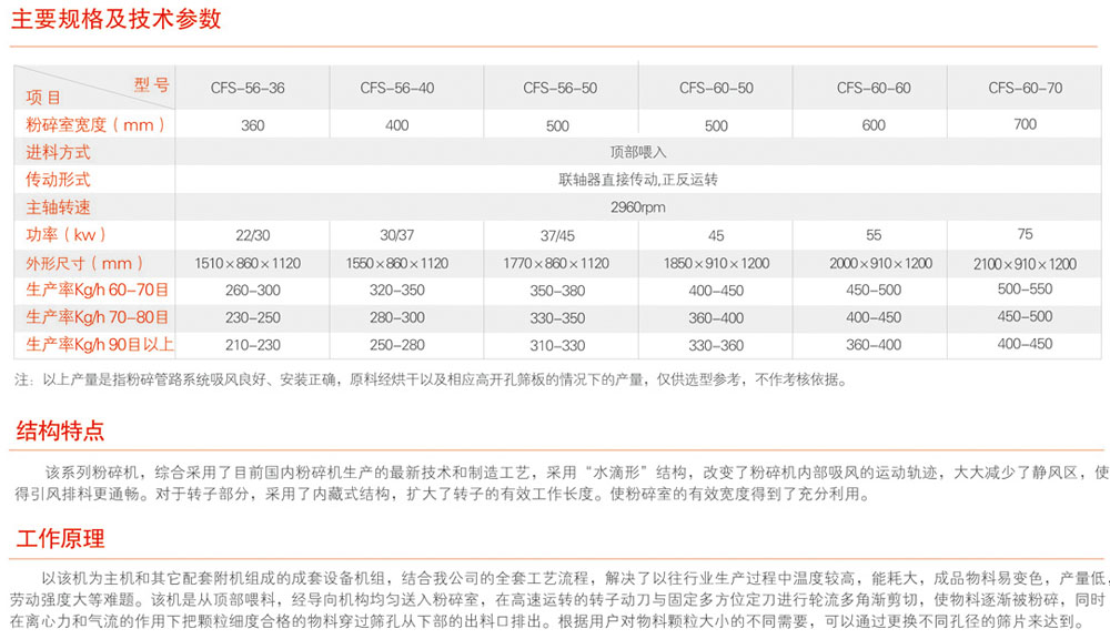 CFS系列水滴式粉碎机,采用“水滴形”结构的生产技术和制造工艺,它综合了国内多种粉碎机结构的优点,具有运行平稳、生产效率高、操作方便等特点。主要适用于各种CMC原料的粗、细、微粉碎,同时亦可广泛应用于食品、化工、发酵、制药、饲料、淀粉等行业的各种物料的粉碎。是目前国内较先进的粉碎机之一。
